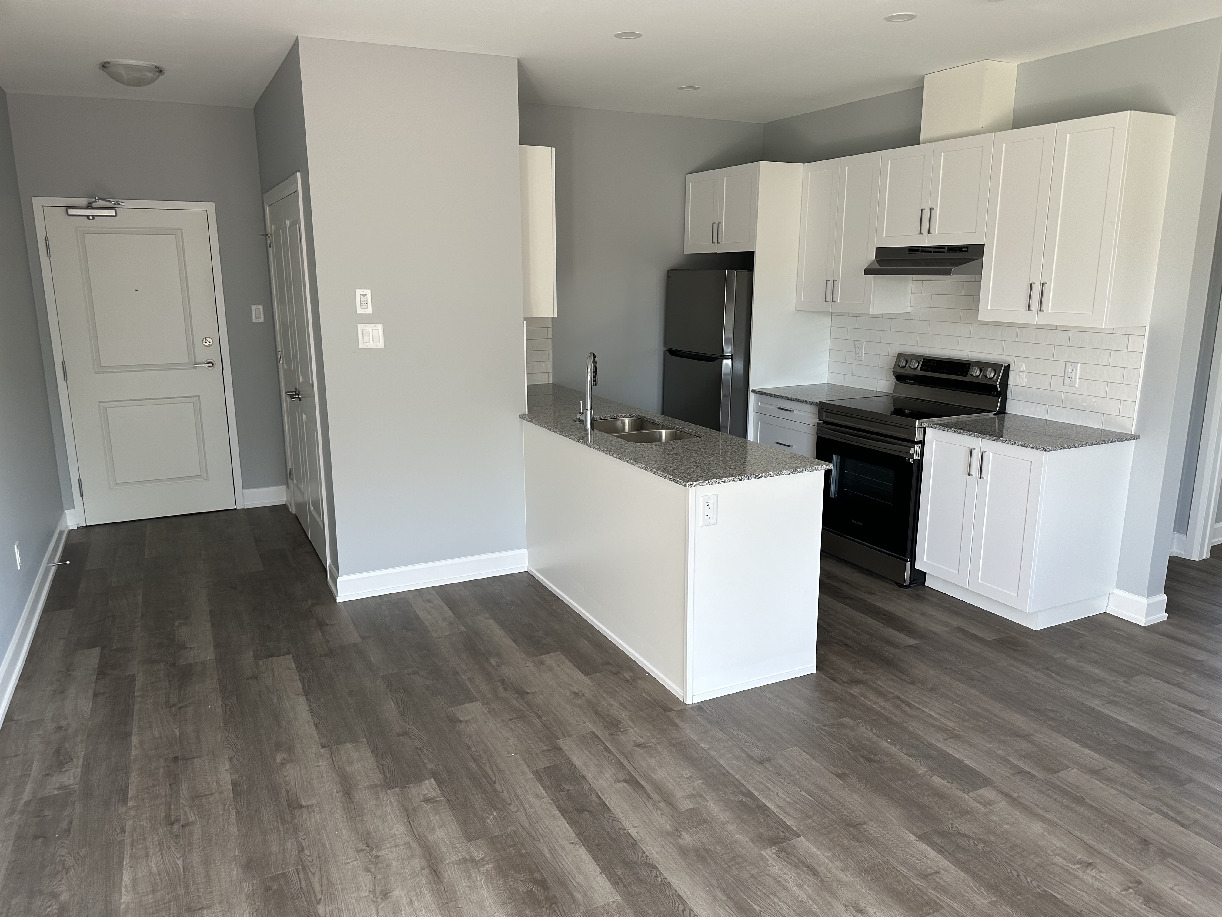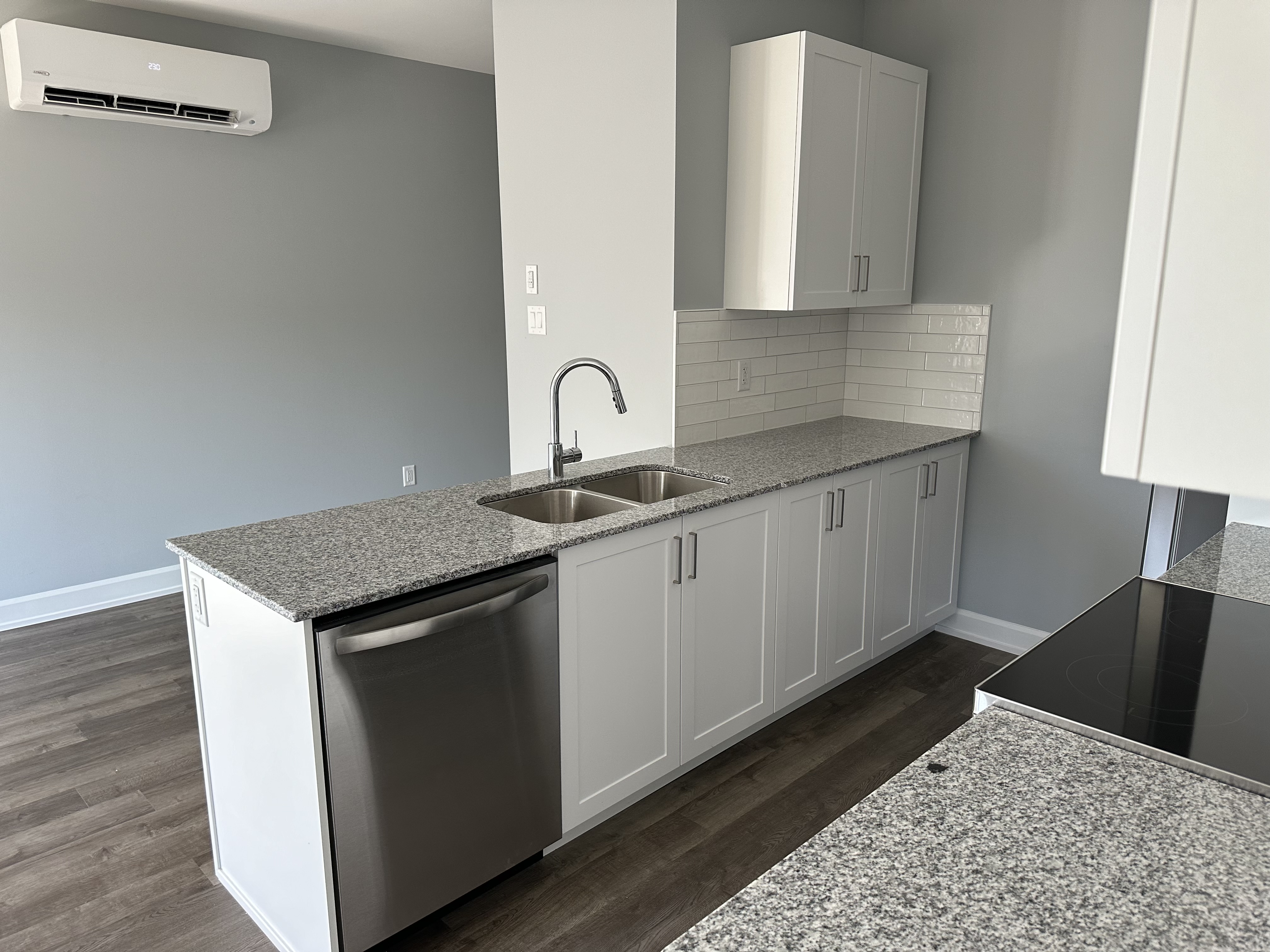 Le 3e étage propose une expérience de vie supérieure avec des plafonds de 10 pieds et des armoires de cuisine contemporaines deux tons combinant des finis blancs épurés et des tons bois chaleureux. Le résultat : un espace lumineux, moderne et raffiné aux lignes architecturales élégantes.
